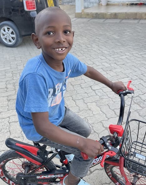 Boy on a donated bicycle